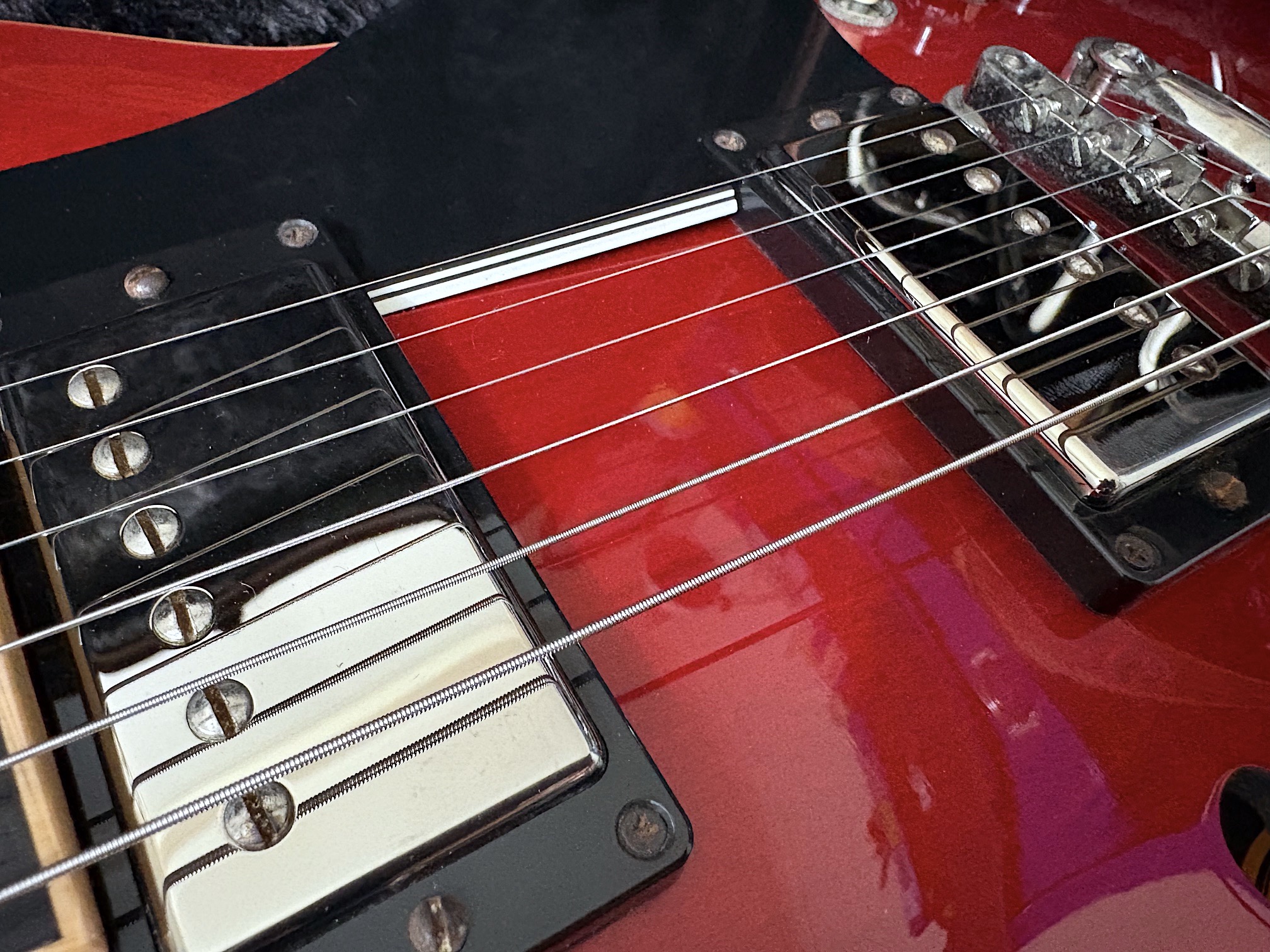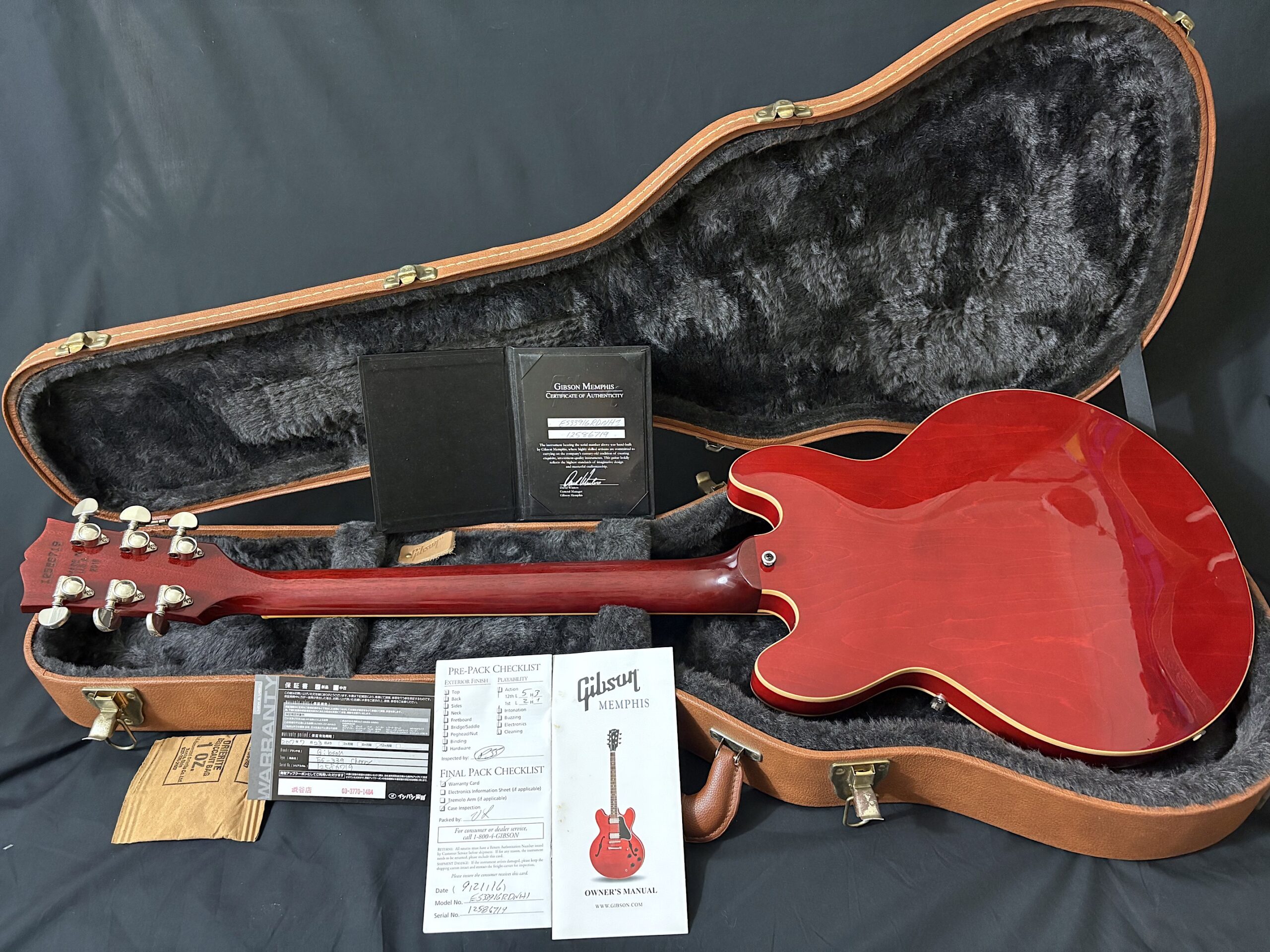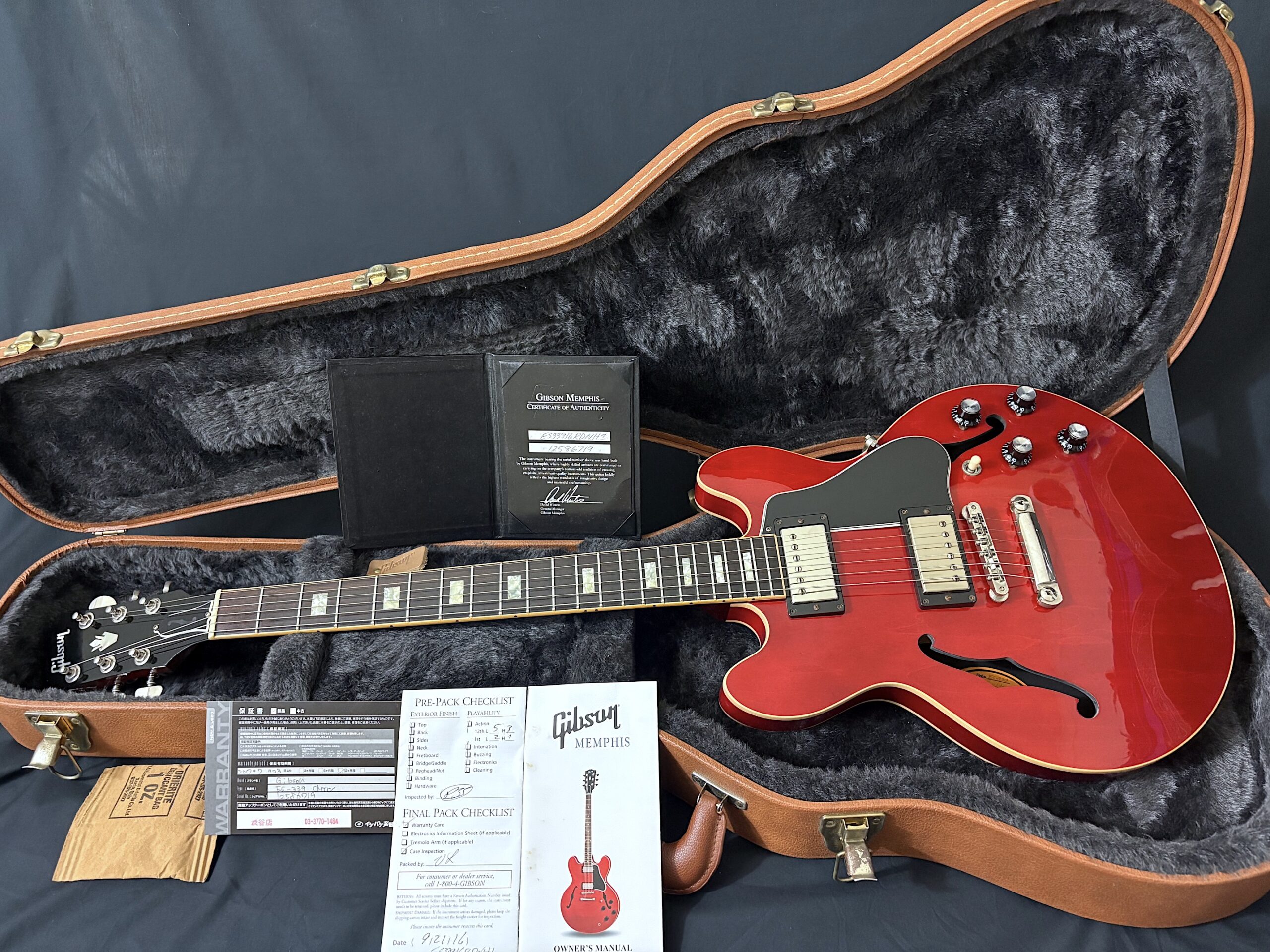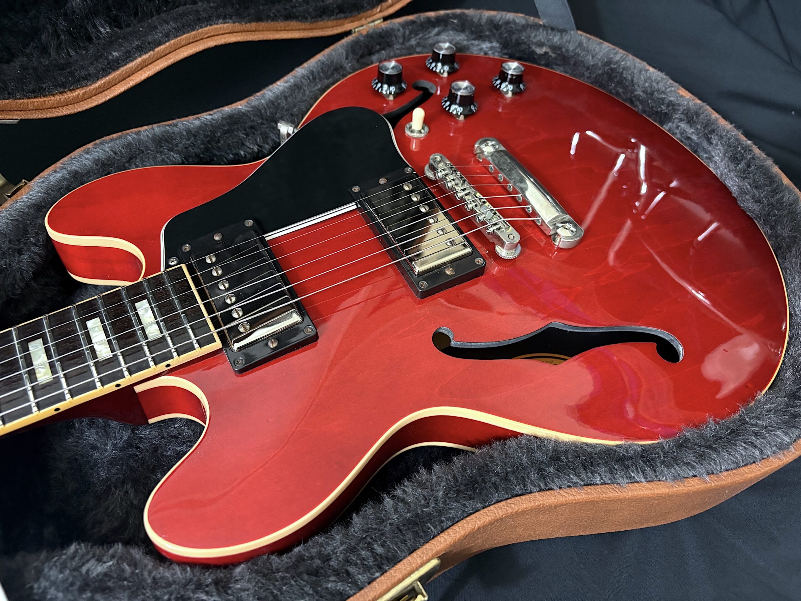 The mahogany neck has a comfortable profile, slightly slimmer than a ’59 rounded C but fuller than a ’60s slim taper paired with a bound rosewood fingerboard with block inlays. Equipped with original Burstbucker 1 & 2 pickups, this guitar covers an impressive tonal range from warm jazz and blues to punchy rock and even bright, twangy tones reminiscent of a Telecaster, all the way to thick, Les Paul-style sustain. One of the standout advantages of the ES-339 is its reduced body size, making it far more comfortable to handle—especially if you’re transitioning from solid-body guitars. It also offers better feedback control compared to a full-size ES-335, allowing you to push gain further when needed. All original and keeping excellent plus condition inside out consider its age, minor hardware tarnish presents VOS touch.This is not just a visually striking instrument, it’s a versatile, reliable guitar that can easily become your go to.